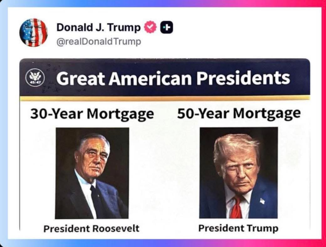 11/12/25   |   Jason Grandon"Arizona Realtor Jason Grandon breaks down Trump’s proposed 50-year mortgage plan — how it compares to Roosevelt’s 30-year legacy, what it means for affordability, and why the mindset of homeownership needs a reset."